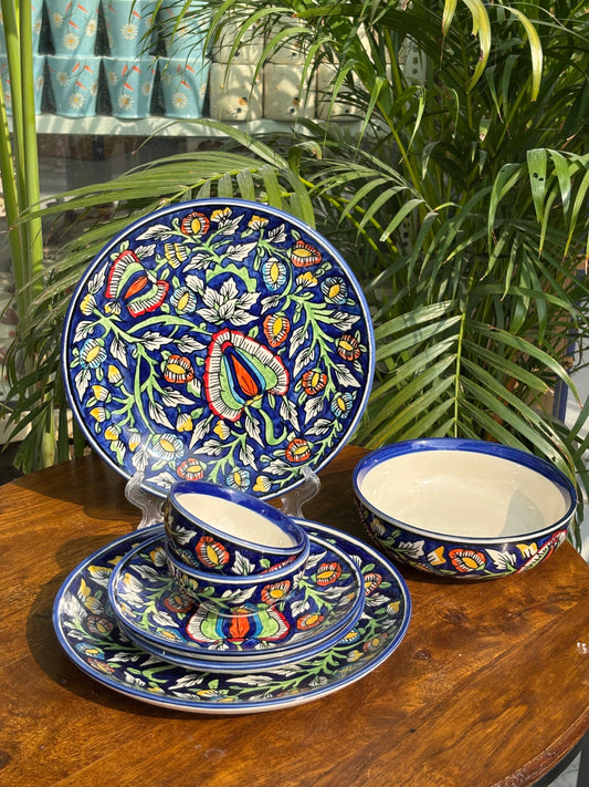 Blue Rhythm Handcrafted Premium Dinner Set (Set of 7)