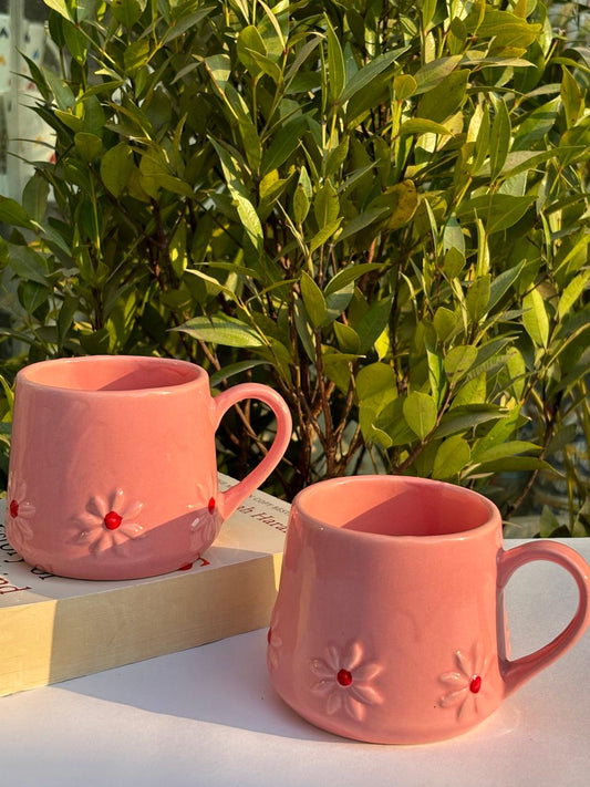 Pink Romance Coffee Mug with Saucer Combo (Set of 2)
