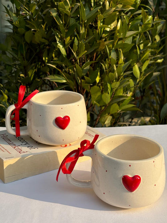 Pinterest Red Heart Coffee Mug with Saucer Combo (Set of 2)