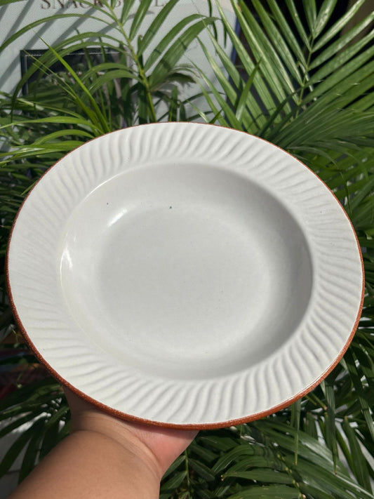 White Pasta Plates with Brown Rim (Set of 2) (7inc)