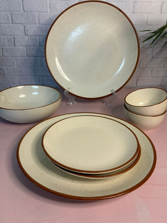 White Dinner Set with Brown Rim (Set of 7)