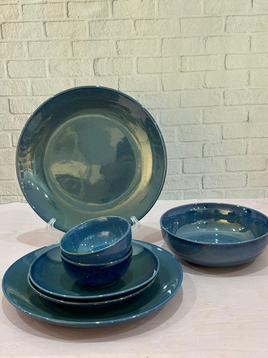 Blue Glaze Dinner Set (Set of 7)
