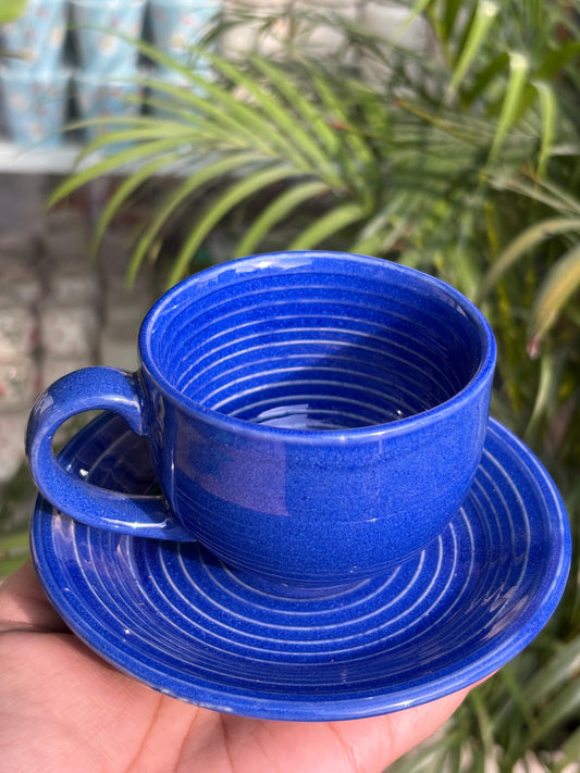 Blue Glaze Cappuccino Cups with Saucers (Set of 2)