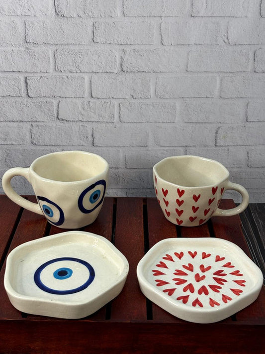 Red Heart & Evil Eye Coffee Mug Saucer Combo
