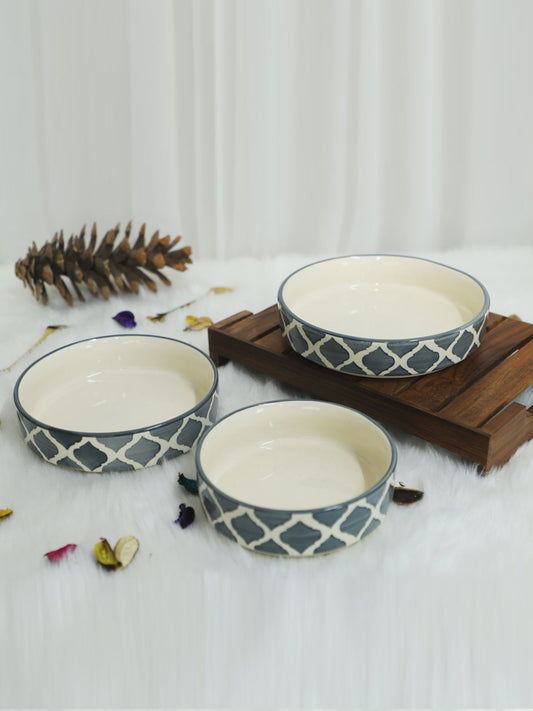 Grey Moroccan Pattern Serving Bowl Set (Set of 3)