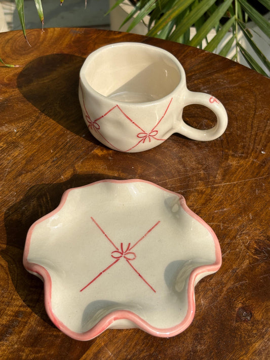 Blush Bow Coffee Mug with Saucer Set