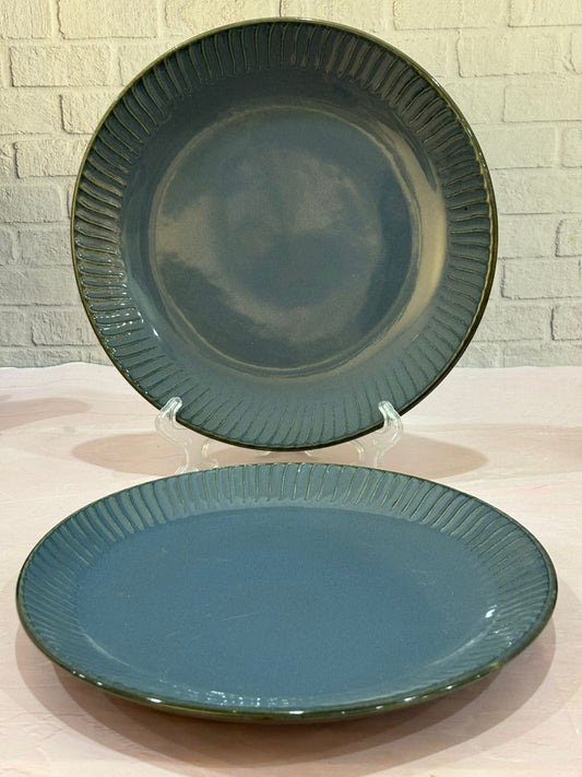 Metallic Blue Glaze with Lines Dinner Set (Set of 3)