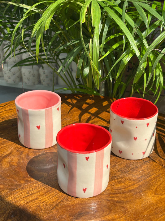 Blush of Hearts Candle Jars/ Water Glasses Combo (Set of 3)